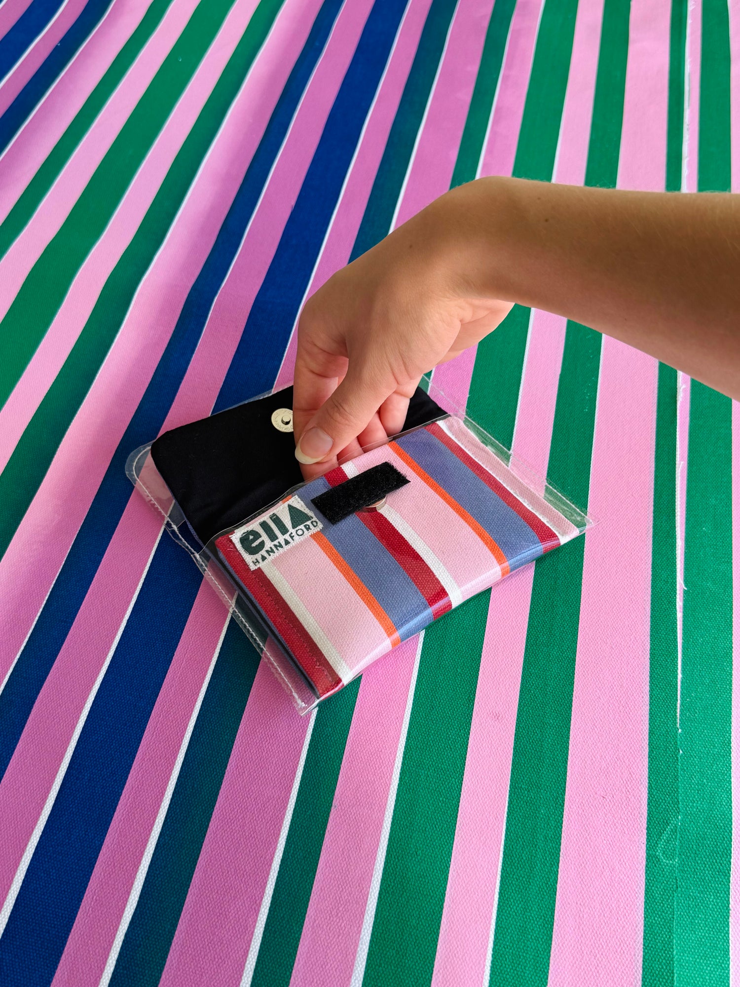 The protective cover is made from clear PVC plastic. A hook and loop closure keeps your items securely inside.