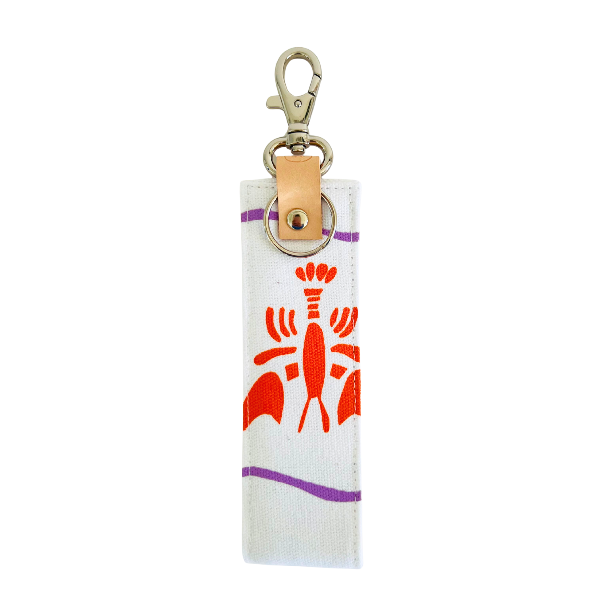 Carefully sourced high-quality materials. This handmade and screen-printed artwork is made of 100% cotton canvas. Hardware includes as split ring to hold all sorts of keys & a bag snap hook, to allow the keys to be clipped inside your bag.